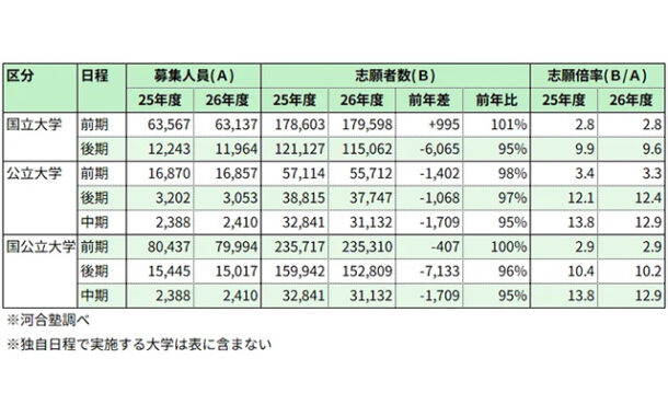 - ナガセ、2026年度 大学入試志願速報① 難関私大・13大学の志願状況(2026年2月25日)