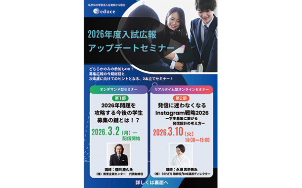 - エデュース、2026年度入試広報課向け無料オンラインセミナー 3月開催(2026年2月26日)