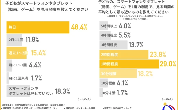 - 未就学児のデジタル習慣は「毎日1時間」=ア・ル・ク調べ=(2026年4月20日)