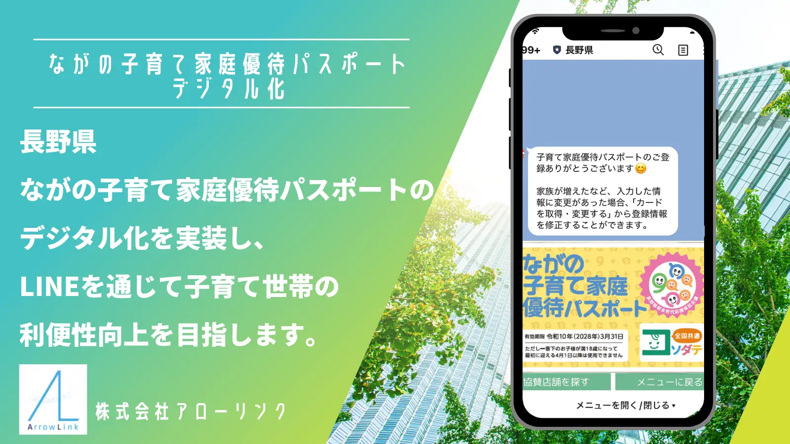 アローリンク、長野県が「Liny」を活用し「ながの子育て家庭優待パスポート」をリニューアル