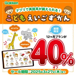 学研ホールディングスのグループ会社Gakkenは、同社のiOS用アプリ「こどもえいごずかん」の12カ月プランが40%OFFで購入できる期間限定セールを、3月14日~27日の間実施している。