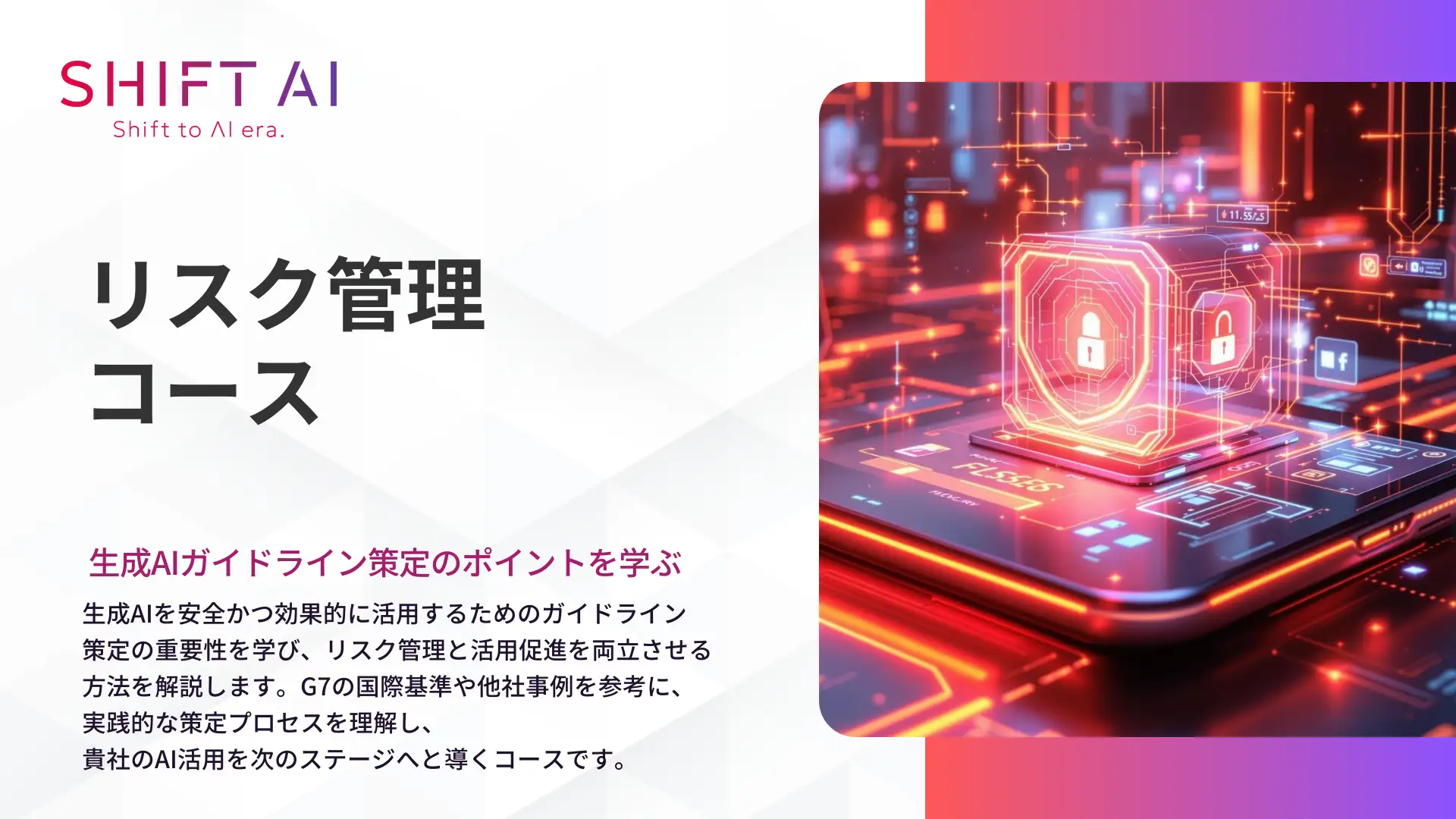SHIFT AI、法人向け生成AIリスキリングサービス「リスク管理コース」提供開始