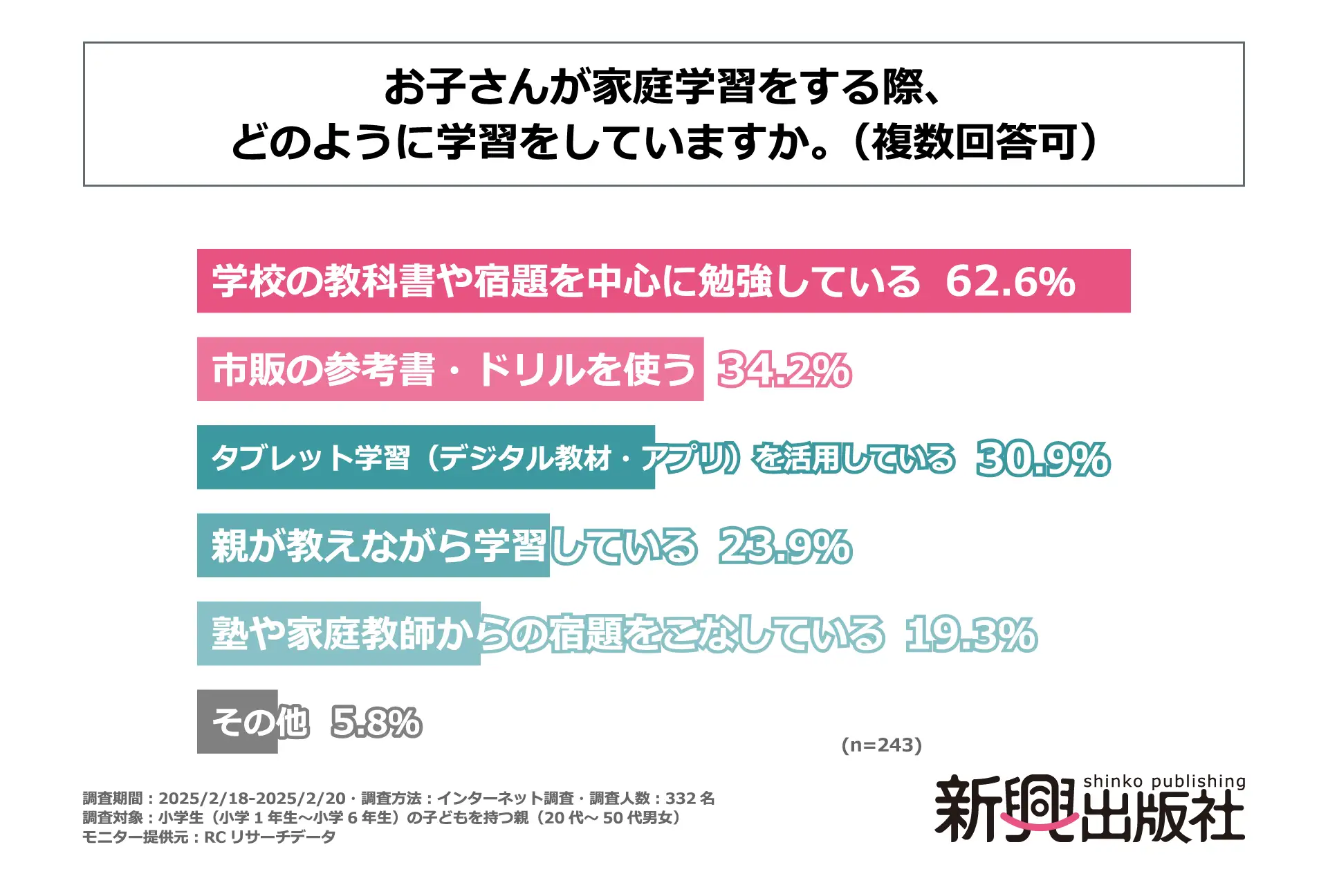 新興出版社啓林館は2日、小学生の子どもを持つ親を対象に「小学生の家庭学習」に関する実態調査を実施した結果を公表した。