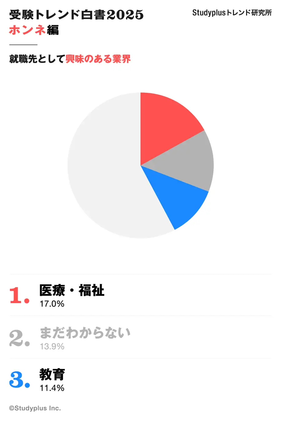 今年の受験生が就職先として興味のある業界1位は「医療・福祉」=スタディプラス調べ=