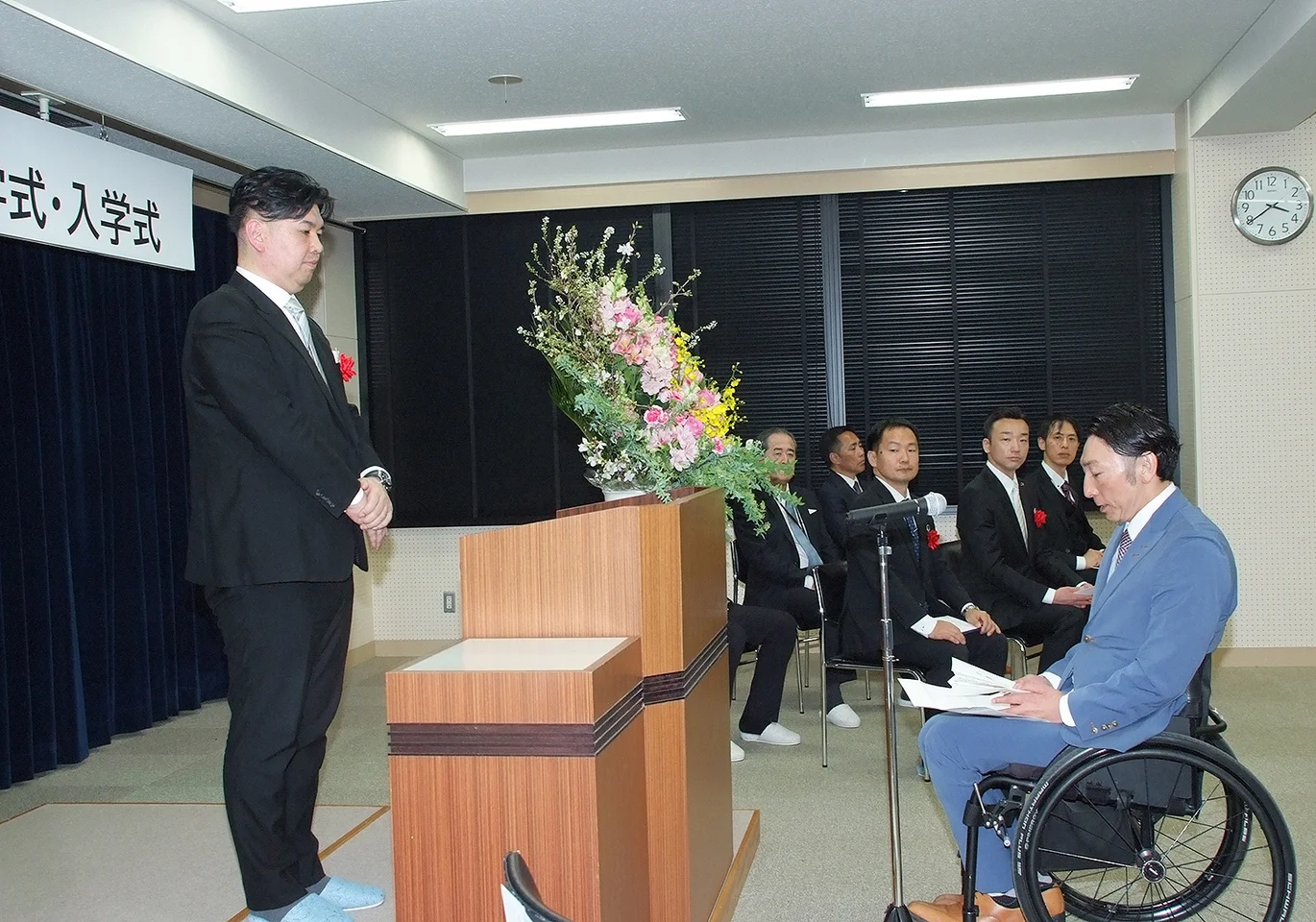 開学式・入学式は入間キャンパス(埼玉県入間市)、阿倍野会場、オンラインを結んだハイブリッド方式で開催。1期生は、20代~60代、北海道から沖縄、またアジア各国の出身者まで幅広く、その職業も幼保小中高大学の教員・職員、教育DX事業者、生涯学習事業者など多岐にわたる。