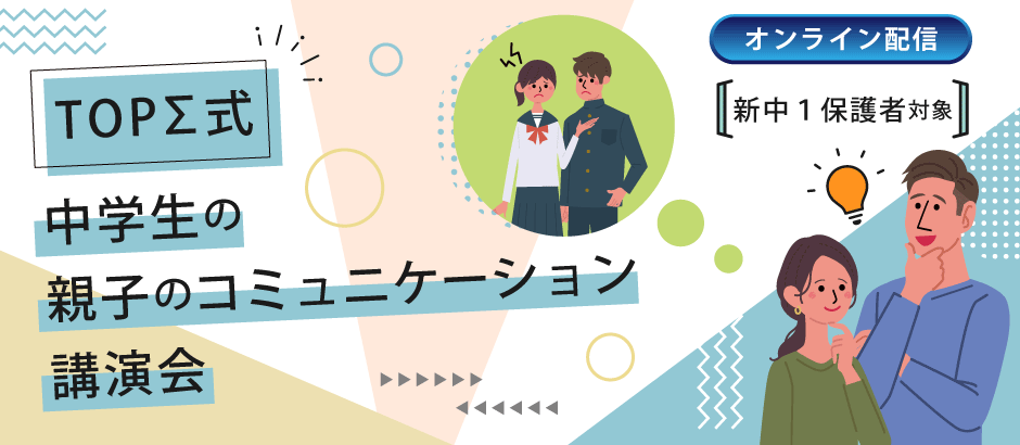 家庭では、新しく中学生になる我が子にどのように接するのがいいのか、子どもとの距離感やかかわり方、中学校最初の定期テストに向けて保護者が協力できることなど、中学進学を迎える家庭へのヒントやアドバイスを、長年中学生の指導をしてきた経験豊富なTOPΣの職員が伝える。
