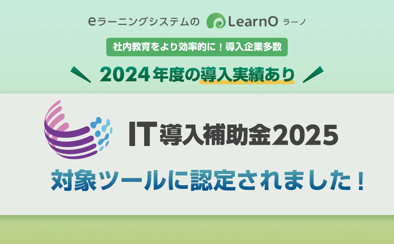 同補助金は、中小企業・小規模維持業者などの労働生産性の向上を目的に、業務の効率化やDX(デジタルトランスフォーメーション)などに向けたITツール(ソフトウェア、サービスなど)の導入を支援する制度。LearnOを含め、対象となるITツールは、事前に補助金事務局の審査を受け、補助金の公式ウェブサイトで公開・登録されている。