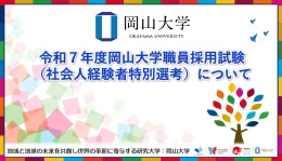 岡山大学、「令和7年度岡山大学職員採用試験(社会人経験者特別選考)」発表