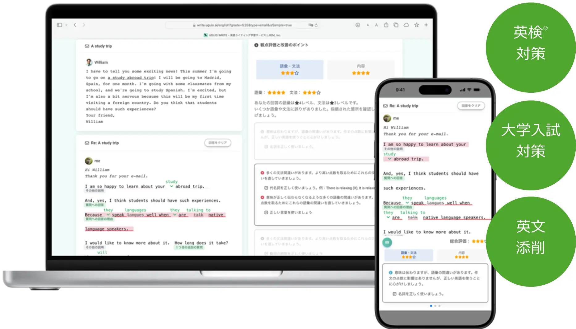 EduLab(エデュラボ)のグループ会社、教育測定研究所は16日、経済産業省「探究・校務改革支援補助金2025」の事業者に採択されたのに伴い、同社のAI英語ライティング学習サービス「UGUIS.AI」(ウグイス エーアイ)の無償導入を希望する学校などの教育機関の募集を開始した。
