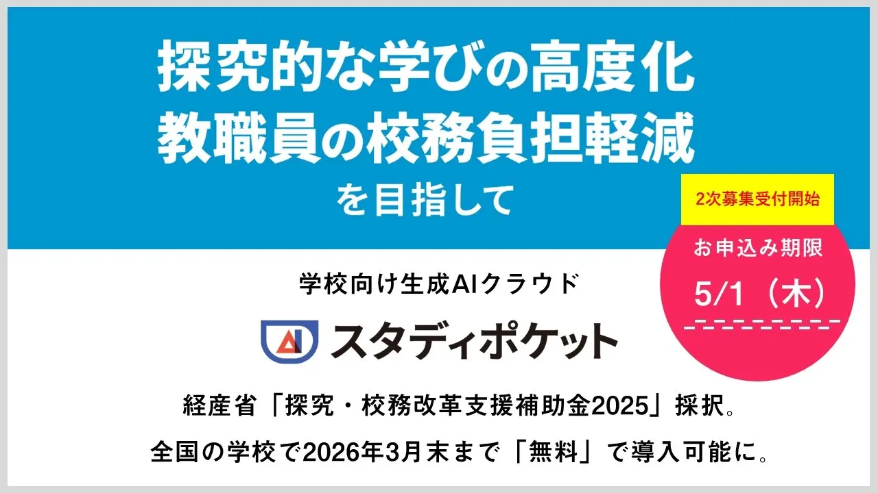 - 学校向け生成AIクラウド「スタディポケット」、経産省補助金の2次募集受付開始
