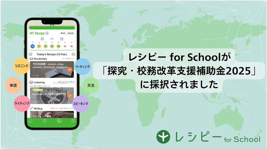 - レシピー for School、「探究・校務改革支援補助金2025」に採択 無償導入校を募集