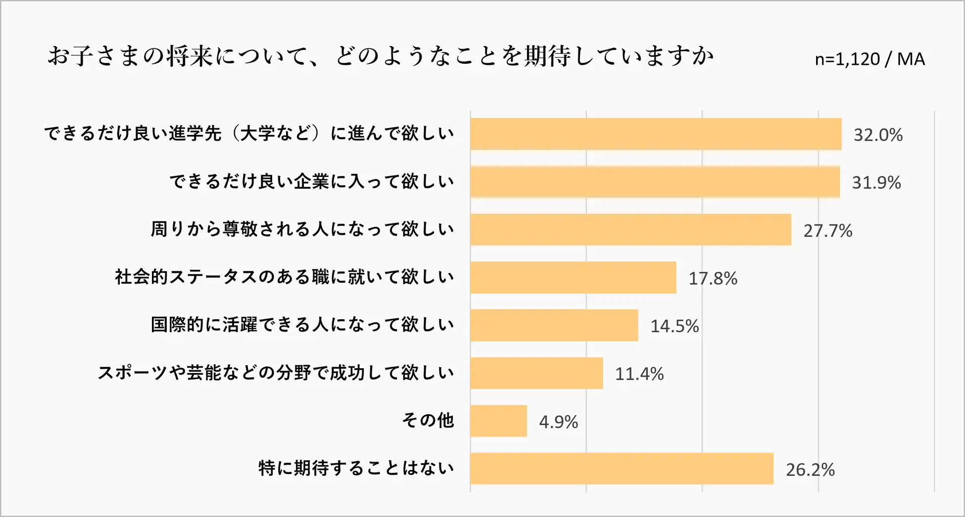 子どもに最も期待していることは「良い進学先」と「良い企業」 =ウィザス調べ=