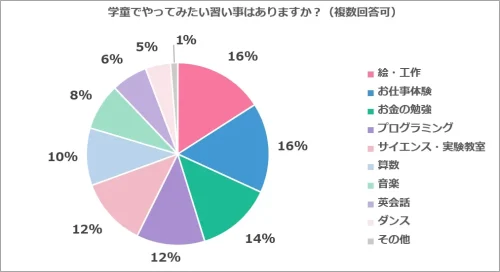 放課後児童クラブでやってみたい習い事「絵・工作」「お仕事体験」「お金の勉強」=ポピンズ調べ=