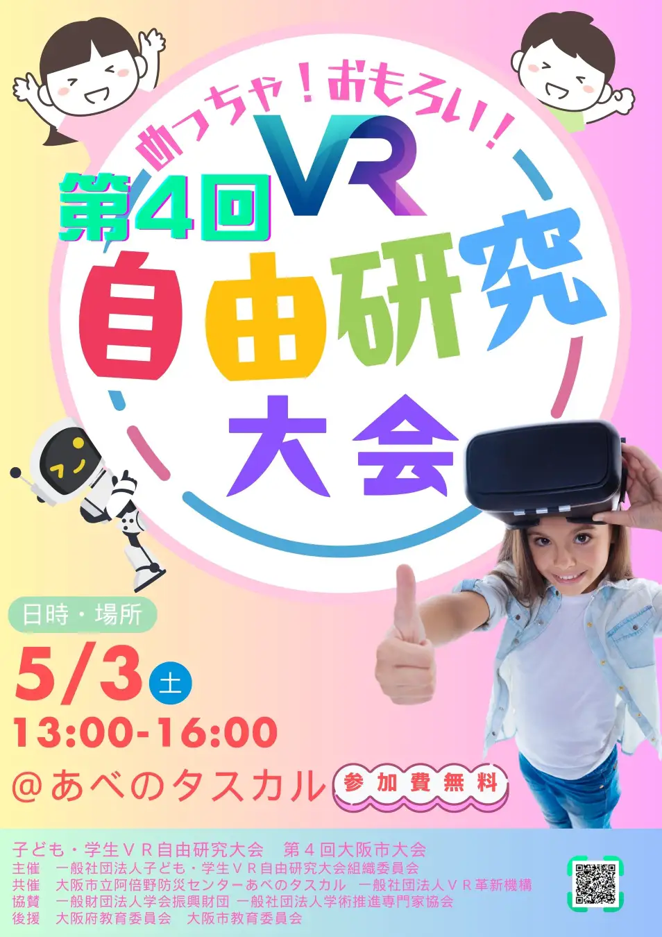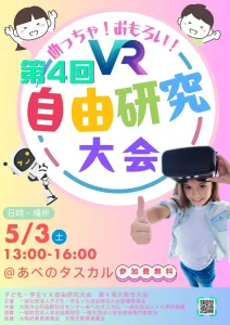 全国の小学生から大学生までを対象にした「子ども・学生VR自由研究大会 第4回大阪市大会」が、5月3日に開催される。
