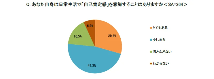 それによると、子どもを持つ親に「日常生活で自己肯定感を意識することはあるか」と尋ねたところ、「とてもある」29.4%と「少しある」47.3%を合わせて、約7割が自己肯定感を意識した経験があると回答した。