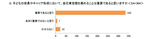 「子どもの成長やキャリア形成で、自己肯定感を高めることは重要だと思うか」との質問には、9割以上の親が「重要であると思う」と回答。