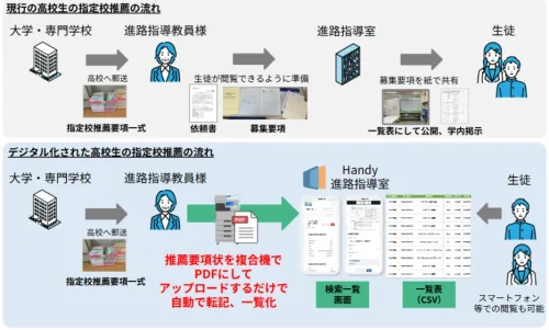 ハンディは23日、高校向けの指定校推薦要項のデジタル管理サービス「Handy進路指導室 進学版」の提供を開始した。