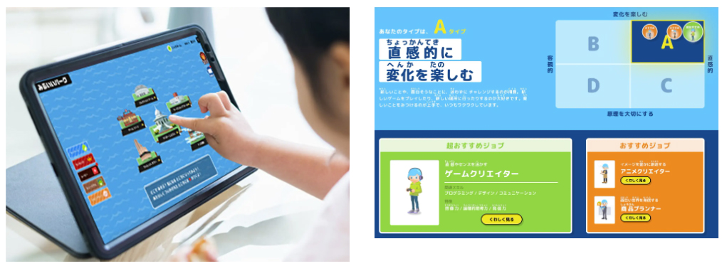 既存の職業から、宇宙旅行ツアーガイドのような未来の職業まで50種類以上の仕事を、ゲームやワークショップ、コンテストを通して体験できるサービスで、「なりたい自分」を遊びながら探究できる。