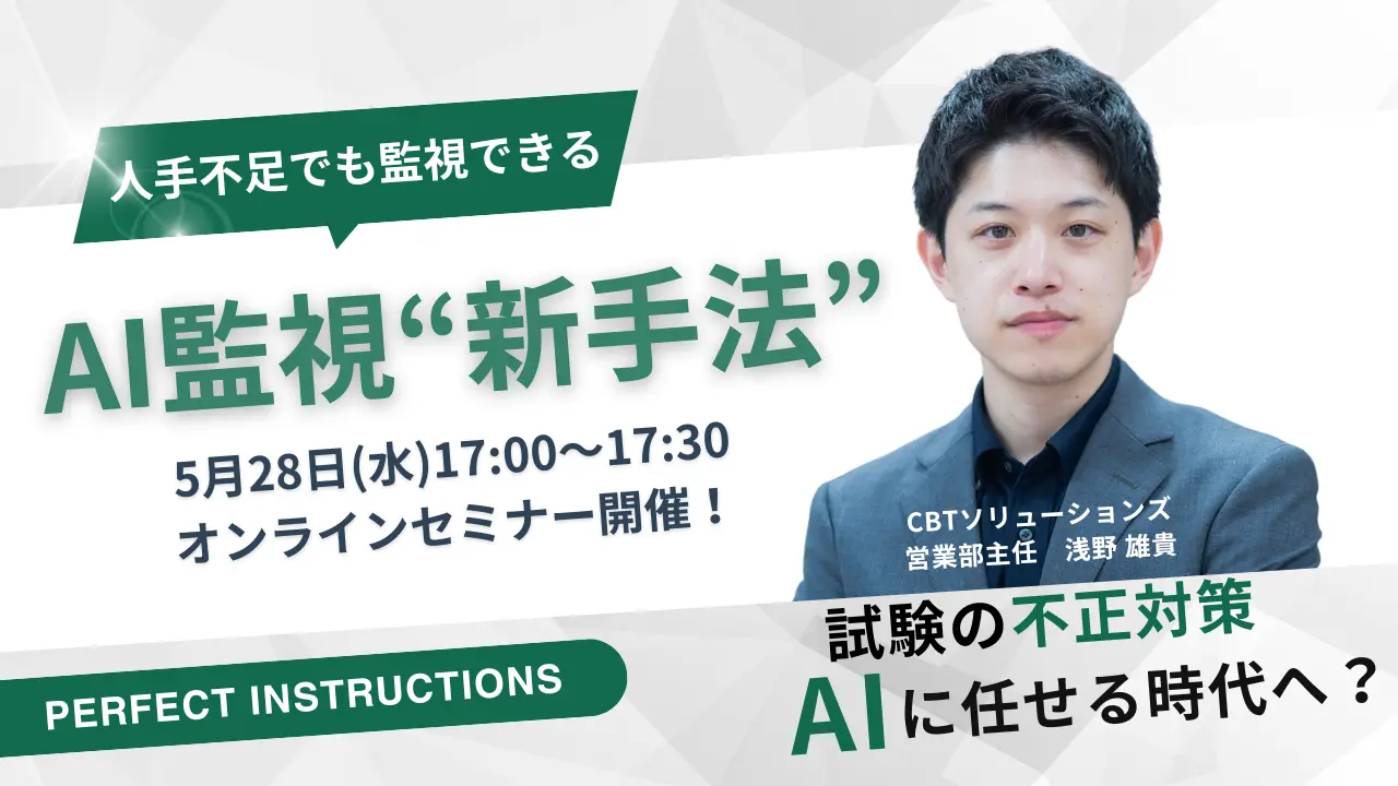 CBTS、「試験の不正対策、AIに任せる時代へ?~人手不足でも“監視できる”新手法~」28日開催