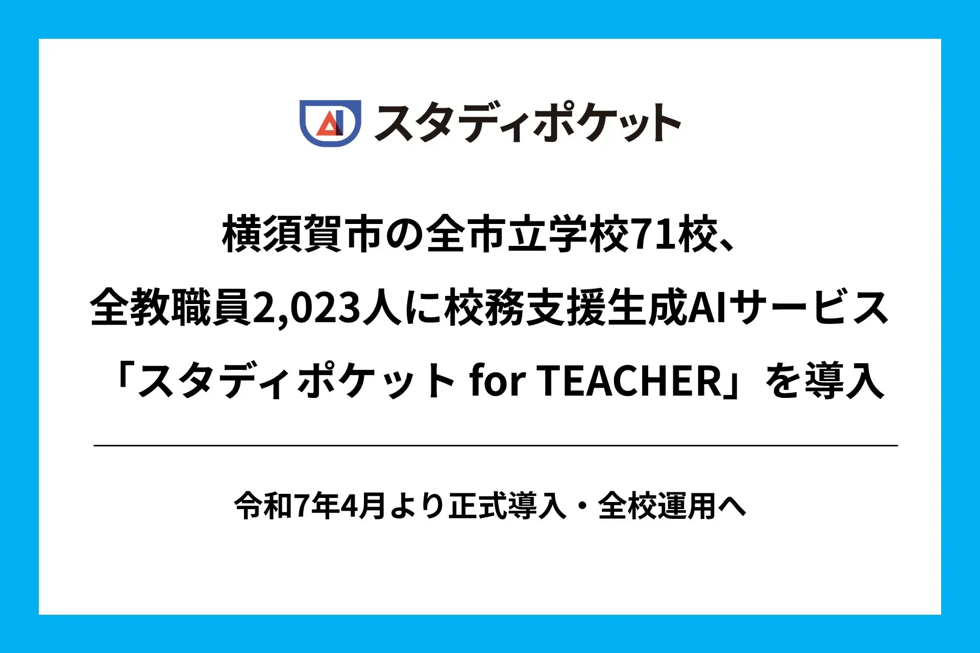 スタディポケット、横須賀市の71校に校務支援生成AI「スタディポケットfor TEACHER」導入