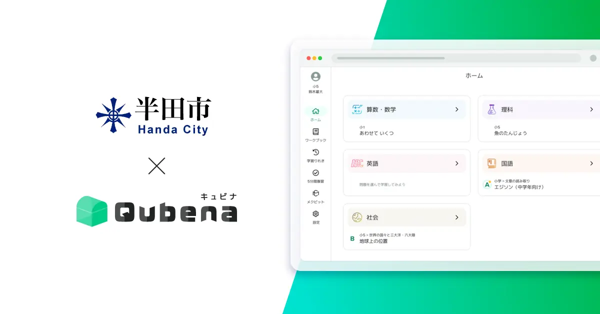 COMPASS、学習eポータル+AI型教材「キュビナ」が愛知県半田市の全市立小中学校で正式採用