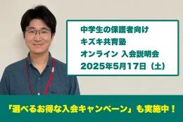 キズキは、中学生の保護者を対象に、同社が運営する「キズキ共育塾」のオンライン入会説明会を5月17日に無料開催する。