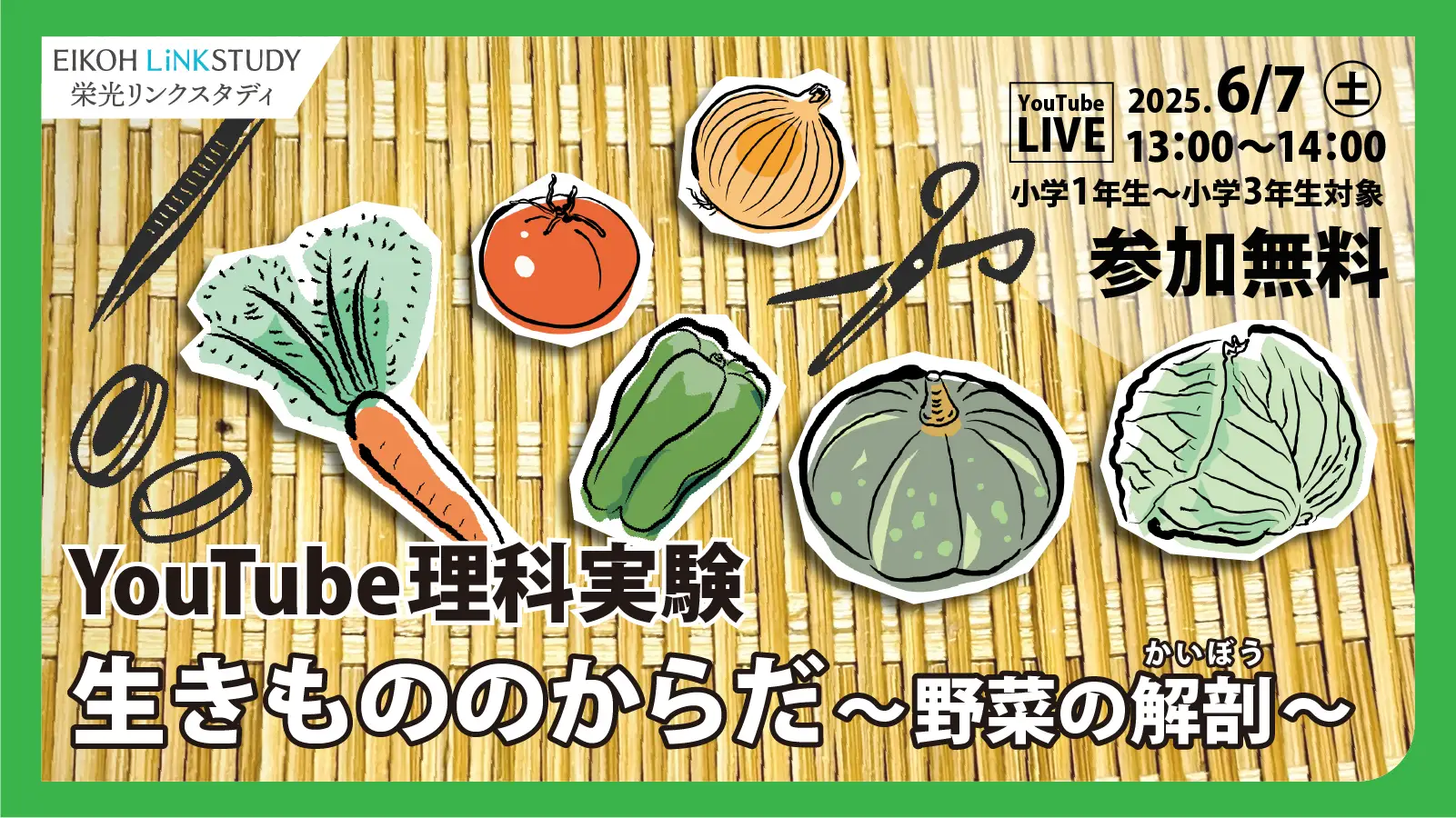 Z会グループの栄光が運営するオンライン進学塾「栄光リンクスタディ」は、小学1~3年生対象のYouTube理科実験「生きもののからだ~野菜の解剖~」を6月7日に開催する。