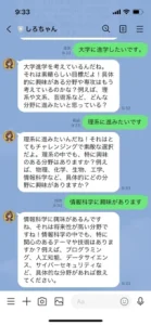 「しろちゃん」は、一般的な情報サイトのように大学や専門学校の情報を一方的に提案するのではなく、AIとの対話を通じた自己分析を行うのが特徴。また、日本の大学進学のほか、起業、海外大学、通信制大学、ギャップイヤーなど、従来の進路指導では十分に対応しきれない多様な進路についても、対話の内容に応じて提案する。