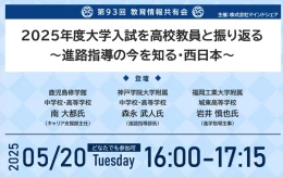 西日本エリアに勤める3名の教員が登壇し、2025年度入試を振り返りながら、進学状況や進路指導の実態、生徒・保護者の声の変化など、入試・募集対策に役立つ高校現場のリアルを紹介する。