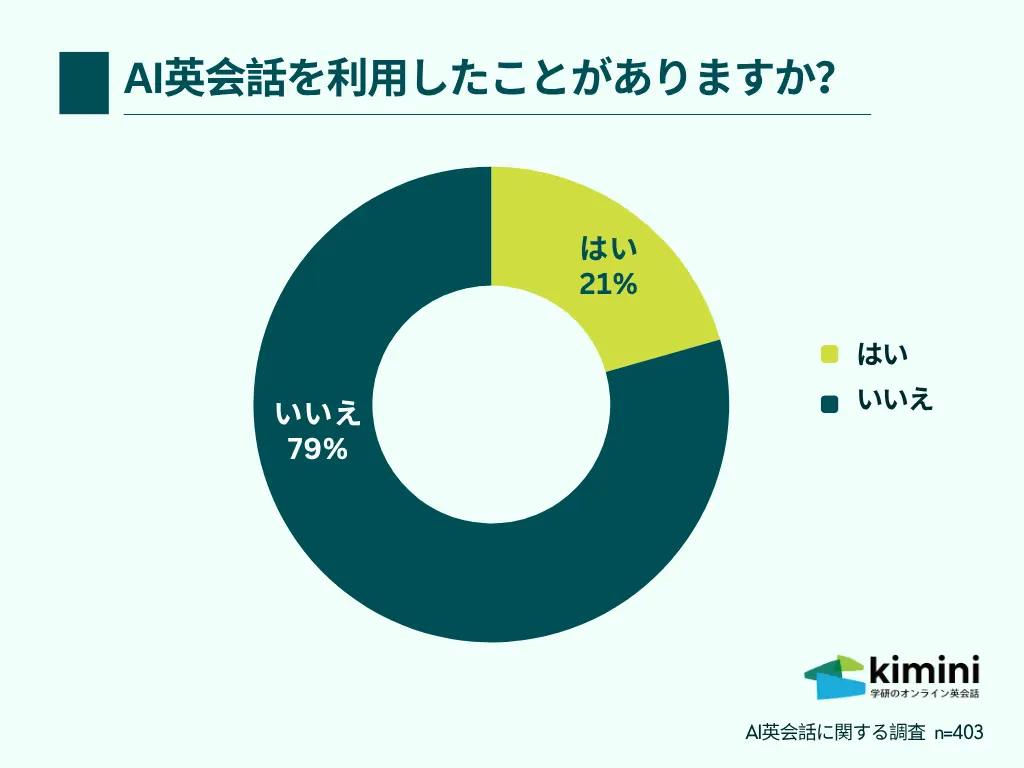 それによると、「AI英会話を利用したことがあるか?」と聞いたところ、「はい」と回答したのは21%にとどまり、79%が「いいえ」と回答。「いいえ」と回答した理由には、「表情やニュアンスなど、非言語的なやり取りが難しそう」「実際の会話と違って柔軟性がなさそう」「実体験に基づくコミュニケーションが重要だと思う」などの意見が多く寄せられた。