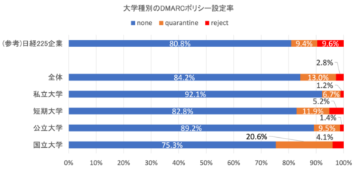 大学のDMARC導入率は45.1%で、昨年同月(38.4%)と比較すると6.7ポイント増加した。