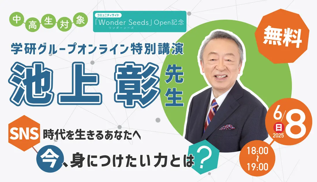 学研グループは、中高生コミュニティサイト「Wonder Seeds」オープン記念の池上彰氏特別講演を6月8日に開催する。