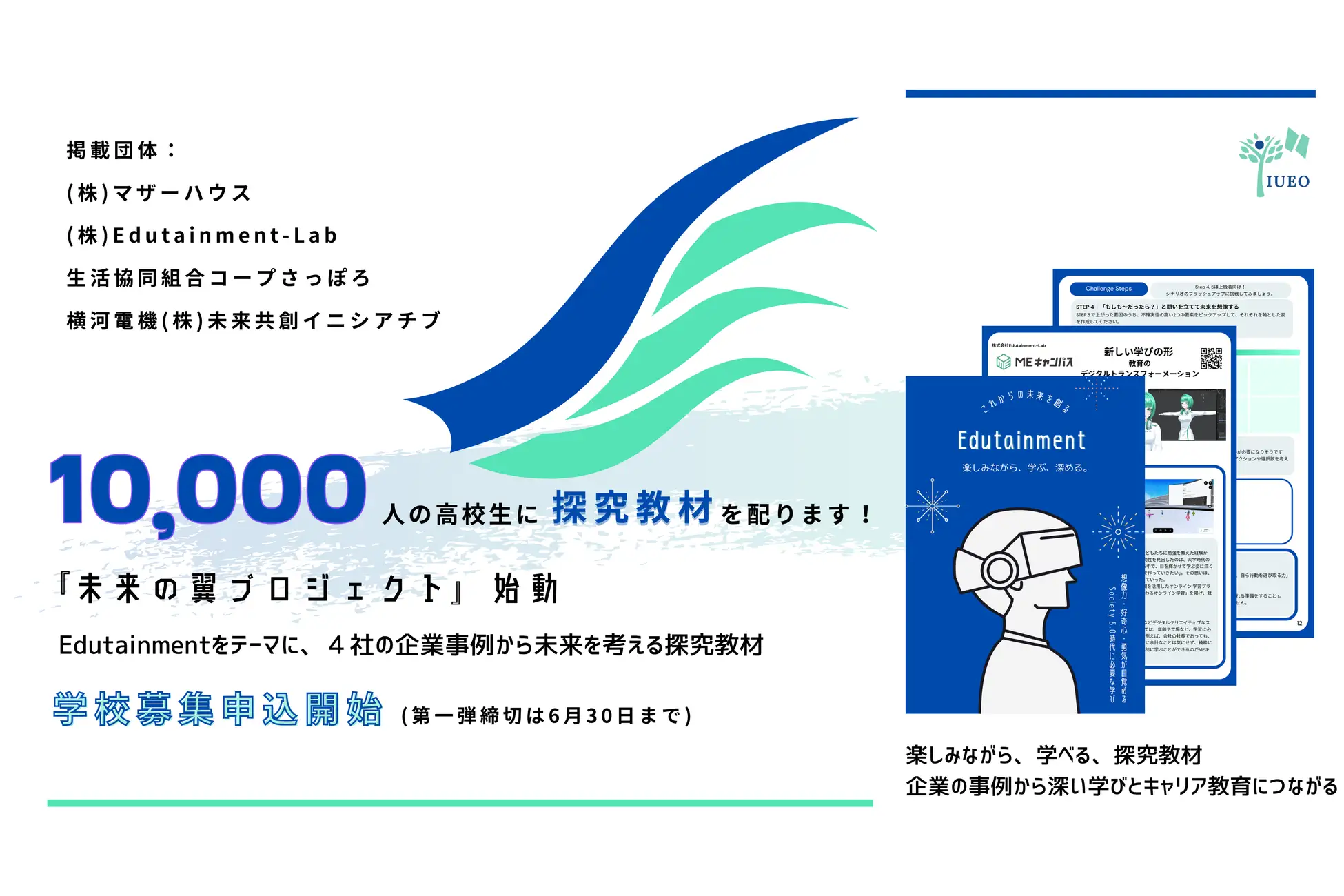 国際エデュテイメント協会は、企業活動の事例をもとにした探究で社会への学びを深め、キャリアについて考える高校生向けエデュテイメント教材「未来の翼プロジェクト」の参加校募集を開始した。第1弾の公募期間は5月26日~6月30日となる。