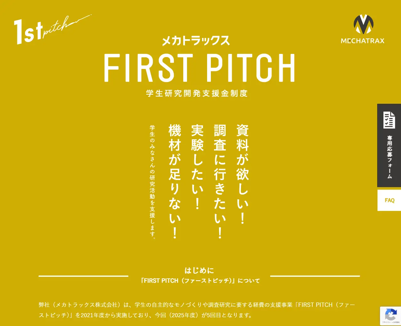 メカトラックス、学生研究開発支援金制度「FIRST PITCH」2025年度の募集開始
