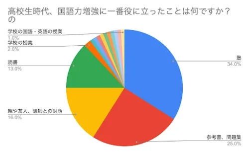 中学〜高校と段階が上がるにつれて、塾や受験対策など「外部からのインプット」が増えていく一方で、基礎的な国語力の土台は「読書」と「対話」で早期に築かれていたという傾向が明らかになった。