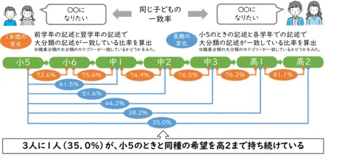 なりたい職業、35.0%の子どもが小学生から高校生まで一貫した希望を持つ =ベネッセコーポレーション調べ=