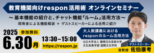 レスポンは、教育機関向け respon(レスポン)の無料オンラインセミナーを6月30日に開催する。