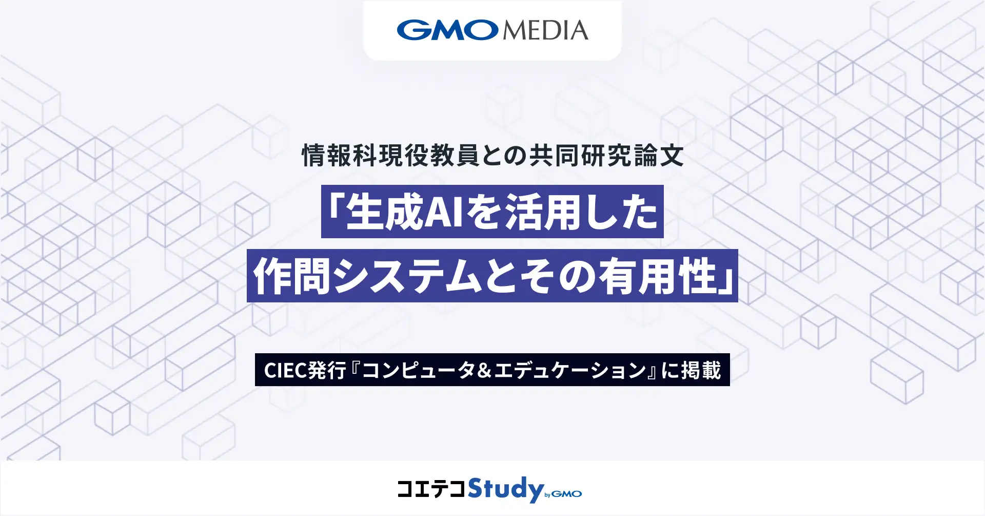 GMOインターネットグループのGMOメディアは2日、高校教員向け簡単課題作成サービス「コエテコStudy byGMO」を活用した共同研究論文「生成AIを活用した作問システムとその有用性」を発表した。
