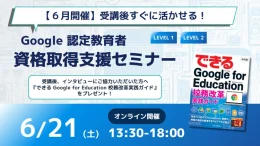 授業や校務において、Google for Educationを活用するスキルがあることを証明できる先生のための資格。先生以外の人も受講も可能。合格するとGoogleから証明書および認定バッジが付与され、公的な場(名刺やメールの署名欄、履歴書 等)で使用することができる。
