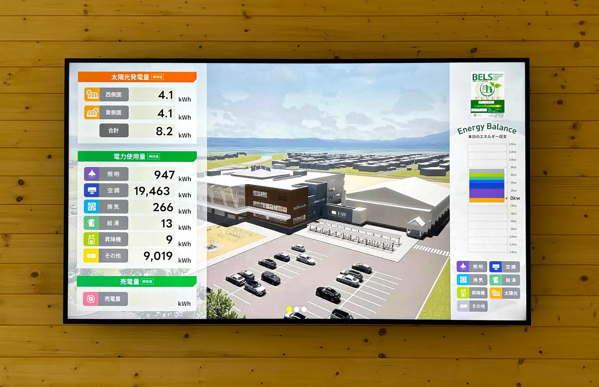 同社の「Smart Building Integration」は、オープンシステム技術を用いて、中央監視システムを核に、空調・照明・太陽光発電などの設備を一元管理し、建物全体のエネルギーを最適に制御する仕組みで、収集したデータは環境教育にも活用でき、建物そのものが学びの教材になる。2023年には「ZEB Ready」、文科省が推進する「エコスクール」、「BELS」の3つの認定を受けた。