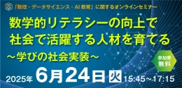 すららネットは、日本数学検定協会の協力のもと、無料オンラインセミナー「数学的リテラシーの向上で社会で活躍する人材を育てる~学びの社会実装~」を6月24日に開催する。