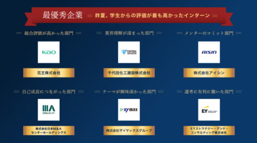 また、ソニーセミコンダクタソリューションズが「業界理解が深まった」「自己成長につながった」「テーマが興味深かった」の3部門で受賞している。