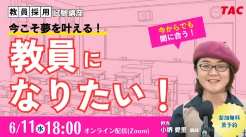 TAC、教員採用試験オンラインセミナー「今こそ夢を叶える。教員になりたい」11日開催