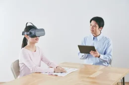 「FACEDUO」は、VR技術を用いたバーチャル映像によって社会生活のさまざまな場面が教材化されたソーシャルスキルトレーニング支援プログラム。