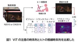 大阪大学大学院生命機能研究科ダイナミックブレインネットワーク研究室 北澤茂教授と大阪大学大学院医学系研究科脳生理学研究室 山本拓都氏(博士課程)らは、動画を見るときの人間の視線計測データと人工知能(ViT)の「注意」を比較して、情報量を最大化する自発的な学習(DINO法の学習)をした人工知能が人間と極めてよく似た場所を見るように「育つ」ことを発見した。