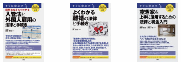 今回、第1弾として発売する3点は、『聴ける!実用法律書 すぐに役立つ 入管法と外国人雇用の法律と手続き』、『聴ける!実用法律書 すぐに役立つ よくわかる離婚の法律と手続き』、『聴ける!実用法律書 すぐに役立つ 空き家を上手に活用するための法律と税金入門』。