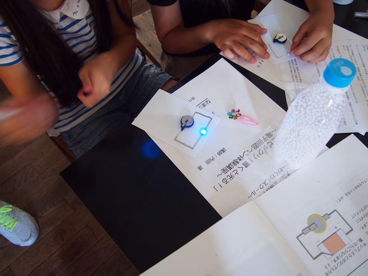 講座では「電子回路ペン」と呼ばれる、紙の上に電気が流れる道を書くことができる特殊な導電性インクペンを使い、電気のしくみを楽しく体験する。自分で書いた線を通じてLEDライトが灯る仕組みを観察しながら、電気回路の仕組みや理科のおもしろさを学ぶ。