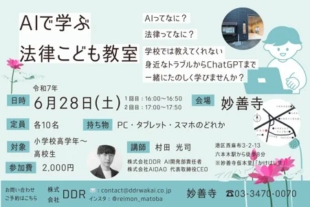 DDR、小中高生を対象とした教育イベント「AIで学ぶ法律こども教室」28日開催