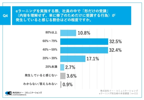 大企業のeラーニング担当者の約8割「形だけの受講」が「40%以上発生している」 =イー・コミュニケーションズ調べ=