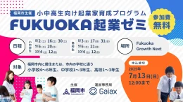 ガイアックスは、福岡市から「小中高校生向け起業家育成プログラム運営等業務」を受託し、同市と連携して、同市内の小中高生を対象にした7日間の起業家育成プログラム「FUKUOKA起業ゼミ」を、8月2日から無料開催する。